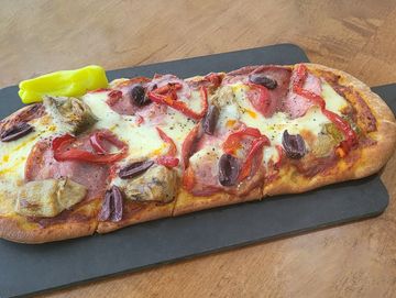 Fresh mozzarella, salami, grilled artichoke, roasted red peppers, Kalamata olives