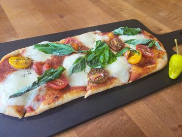 Fresh mozzarella, grape tomatoes, basil, sea salt flakes, cracked black peppers