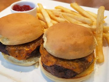 Two cheeseburger sliders, fries or salad
